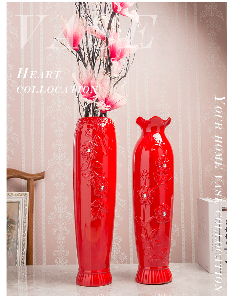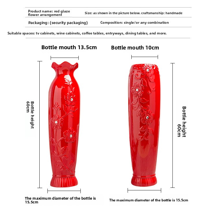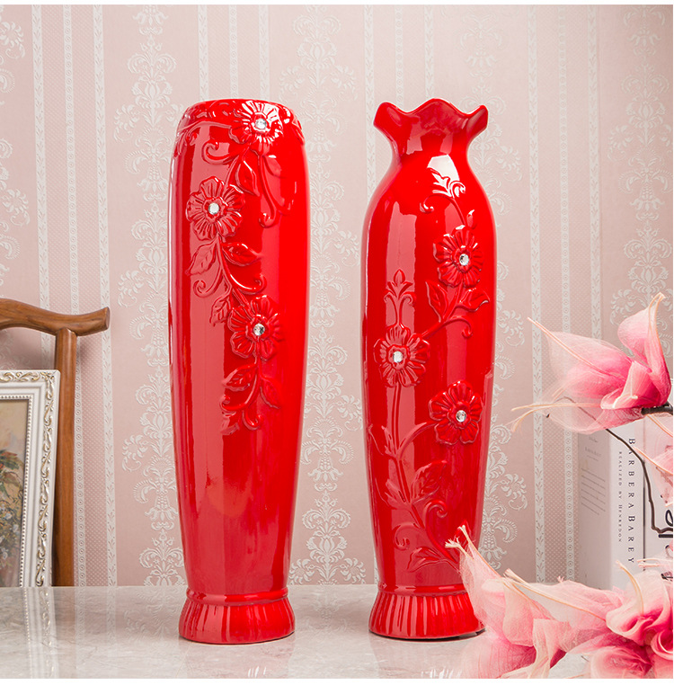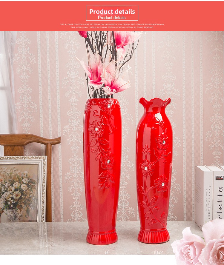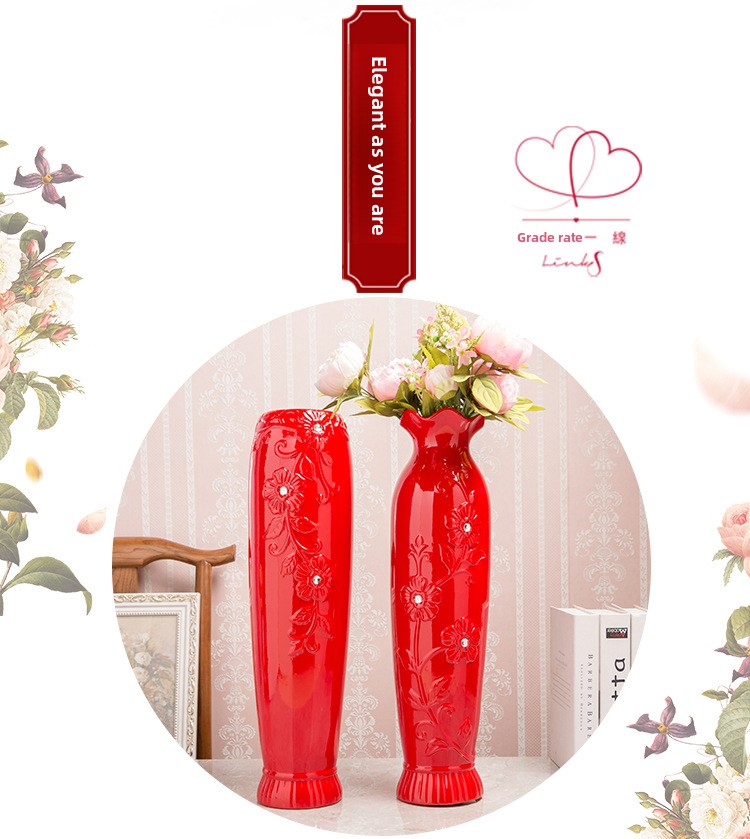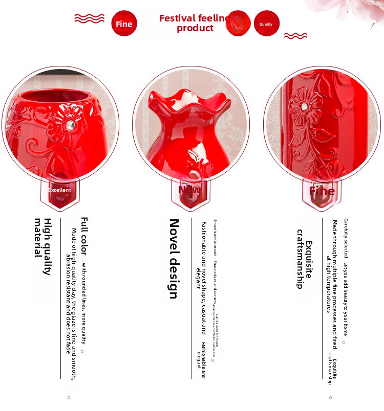 Festive Design: Traditional Chinese red ceramic vase with decorative lotus mouth pattern, ideal for celebratory occasions