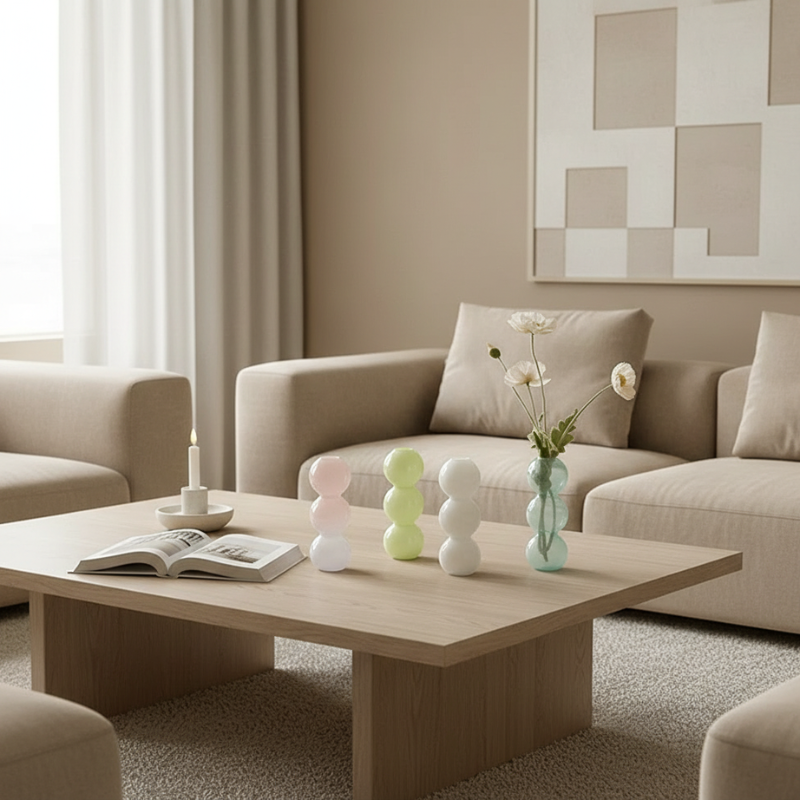 Apportez une touche de brillance à votre intérieur avec le vase en verre 3 boules jaune !